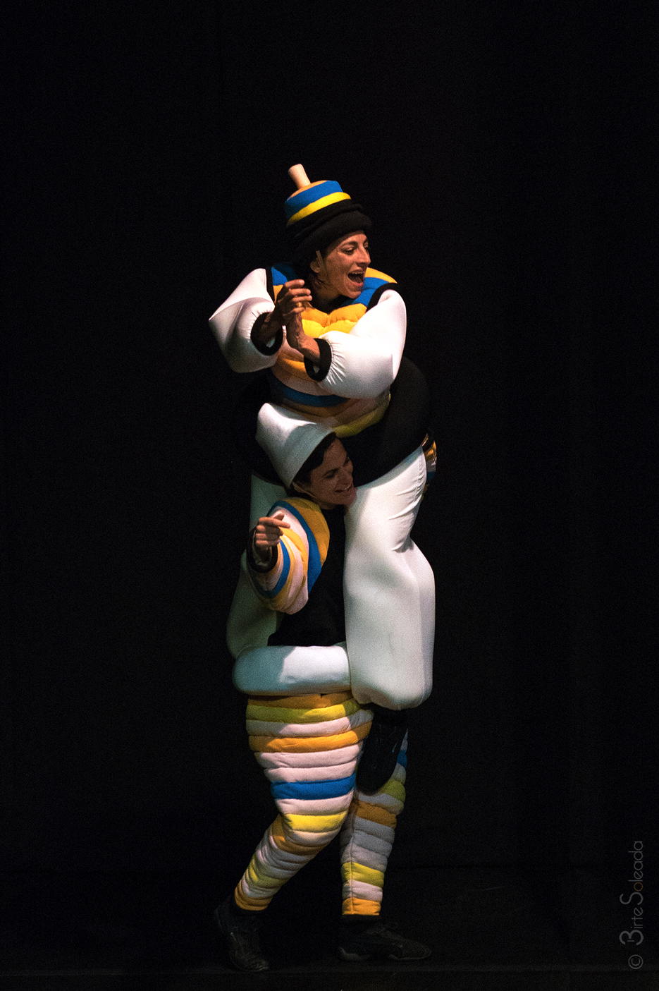 Rather than mechanized figurines and dehumanized formal language, the production emphasized the clownesque and carnivalesque aspects that Schlemmer himself described in his notes. Eighteen handcrafted figurines — developed by Caterina Di Fiore and Udo Lensing from various materials — were designed to extend the dancers' bodies, not restrict them: expansion instead of automation, energy instead of mechanism.